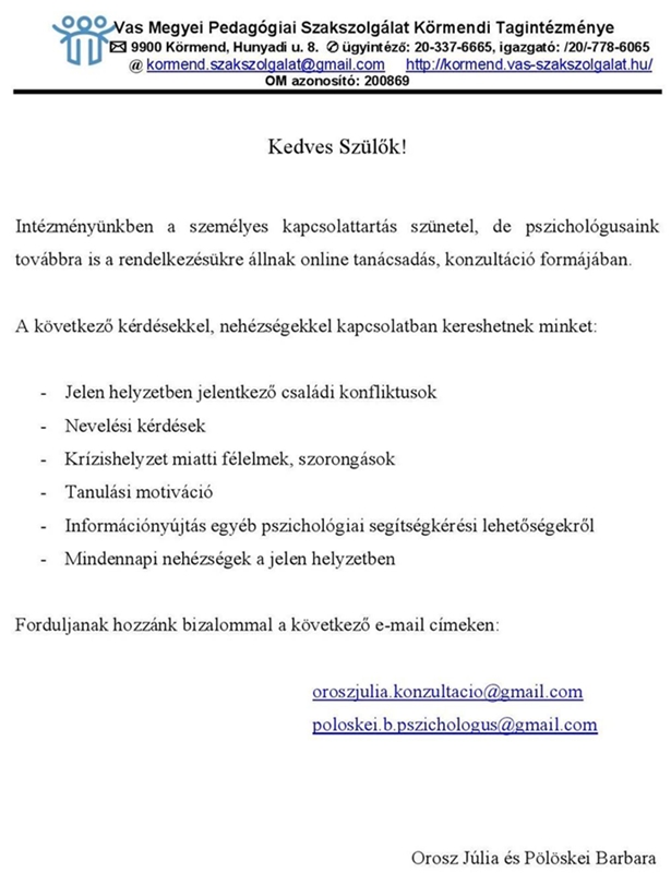1. Ha a szülőknek nincs ettől eltérő szándéka, a kötelező felvételt biztosító körzetes iskola a gyermeket hivatalból felveszi. Az iskolával való kapcsolatfelvételre a telefonos, elektronikus megkeresést javasoljuk, az adategyeztetés az elektronikus KRÉTA-rendszeren keresztül történik 2020. május 21-éig. A KRÉTA-rendszer működéséről az iskolák honlapjai adnak tájékoztatást. Ha az elektronikus adategyeztetésre semmiképp sem nyílik lehetőség, a rendkívüli helyzetben a 2020/2021-es tanév kezdetekor a megfelelő dokumentumok bemutatására személyesen is sor kerülhet a körzetes iskolában.