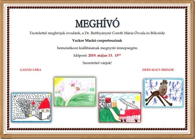 Ebben a nevelési évben az utolsó -sorrendben a XI. - Mini kiállítás megnyitójára invitáljuk a kedves Szülőket, 2019. május 13-án (hétfőn) 15:15 órára,