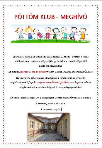 Tájékoztatjuk a kedves Szülőket, hogy óvodánkban a