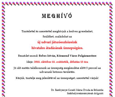 új udvari játékeszközeink avató ünnepségére, melynek ideje