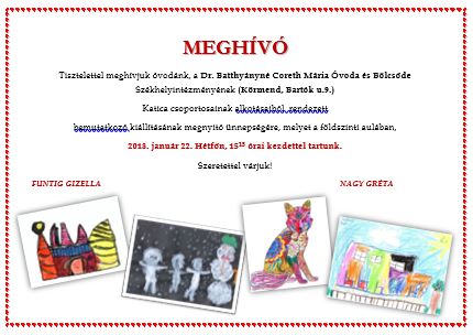 a Katica csoportos Funtig Gizella és Nagy Gréta alkotásainak megtekintésére invitáljuk Önöket,